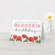 Wish someone a happy birthday with this unique card, featuring the message, "Wishing a happy and very blessed birthday." Design is accented with red watercolor tulip on bottom border. Inside has this message but can be customised with your own message. Hope God fills your year with His grace, mercy, peace and abounding love. Happy Birthday!