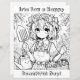 Cute adult colouring page. Cute anime girl in the garden wishing you a happy beautiful day.