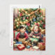 Sweet Christmas postcard with kids gleefully opening up their gift from Santa under the tree. Mid-century retro nostalgic memories with vintage vibes.