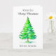 Pretty watercolor Christmas tree personalised holiday card. Wishing you a Merry Christmas and a Happy New Year.