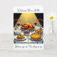 A pretty Thanksgiving card wishing friends and family all the Autumn Thanksgiving Blessings. You can customise all the text on this card if wished. A fun illustration of Thanksgiving dinner.