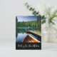 Keep in touch with this postcard showing a man fishing on the dock surrounded by the woods on the lake.