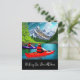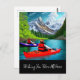 Keep in touch with this postcard showing a couple of kids in kayaks on a lake surrounded by pine trees and snow covered mountains with gorgeous reflections in the water.