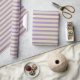 Wisteria purple striped bordered by thin brown stripes decorate this tan wrapping paper, perfect for wrapping gifts for any occasion.