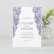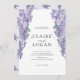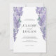 This elegant and romantic wedding invitation features a white background with wisteria in watercolor. The reverse side features a light purple background with wisteria patterns. Personalise it for your needs. You can find matching products at my store.