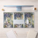 This tranquil watercolor design captures the essence of a slow, sunlit afternoon on a country porch. Cascading wisteria blooms in soft purples drape over a weathered pergola, framing a peaceful scene centred around a cosy rocking chair topped with a quilted cushion. A wide-brim straw hat rests nearby, suggesting recent company, while a glass of lemonade and a teacup invite pause and reflection. Butterflies dance gently through the air, bringing movement to the calm. The hand-painted style gives a dreamlike, nostalgic feel, ideal for evoking memories of summer retreats, farmhouse living, and moments of mindful rest. Display this scene in spaces where peace, charm, and nature are welcome—perfect for a reading nook, sunroom, or entryway gallery wall. AI generated artwork.