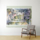 This tranquil watercolor design captures the essence of a slow, sunlit afternoon on a country porch. Cascading wisteria blooms in soft purples drape over a weathered pergola, framing a peaceful scene centred around a cosy rocking chair topped with a quilted cushion. A wide-brim straw hat rests nearby, suggesting recent company, while a glass of lemonade and a teacup invite pause and reflection. Butterflies dance gently through the air, bringing movement to the calm. The hand-painted style gives a dreamlike, nostalgic feel, ideal for evoking memories of summer retreats, farmhouse living, and moments of mindful rest. Display this scene in spaces where peace, charm, and nature are welcome—perfect for a reading nook, sunroom, or entryway gallery wall. AI generated artwork.