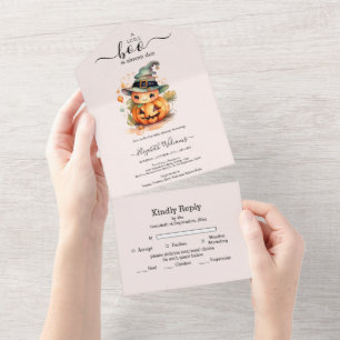 Halloween Watercolor Pumpkin Little Boo Baby Showe Invitation