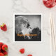 Fun Halloween paper party napkins feature black and white photograph of full moon with flying witch silhouette and customisable text overlay