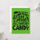 This Halloween-themed design features the playful phrase "Witch Better Have My Candy" arranged in a dynamic, mixed-font layout. The word "Witch" is displayed in bold, blocky letters, while "Better" is written in a cursive, flowing script, adding a sense of urgency and fun to the design. The phrase "Have My" is enclosed within a banner, further emphasizing the demand. The word "Candy" stands out at the bottom in large, block letters, with small skull illustrations integrated into the design. Additional Halloween elements, such as a witch's broomstick, a bat, a star, and wrapped candy, are scattered throughout the composition, enhancing the spooky and festive feel.