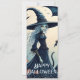 A mystical witch in flowing black stands beside her black cat, under a twilight sky alive with bats. This Halloween artwork blends enchantment and gothic charm, evoking a spellbound world of shadows and whispers.