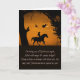 Super cute card of a horse and rider on Halloween night. A witch and her familiars, a black cat, owl and raven, oak tree and crescent moon and a fun poem for Halloween. Wish someone an extraordinary, amazing, unique, exceptional, special, fun, and remarkable Halloween!