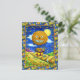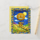 WITCH, BLACK CAT IN HOT AIR BALLOON FOLK ART HUMOR HOLIDAY POSTCARD