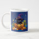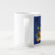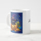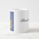 This ceramic speciality mug has a cute black kitten with his/her own little witch hat in a spooky carved pumpkin jack-o-lantern. Berries, spider web and starry night sky are the background. The text lettering on the back of the mug can be personalised to your own message or name.