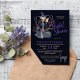 Chic elegant Halloween dark midnight blue and purple typography bridal shower party invitation template featuring a witch in a grey charcoal dress and hat with a broom, brushwood and cats Fill in your information in the spots, You can choose to customise it further changing fonts and colours of lettering. ------- Please note that the background colour is editable. You can change it after selecting CUSTOMIZE option.---------The invitation is suitable for a chic Halloween wicked witch themed inspired party. --- If you need assistance to customise it, please contact me!
