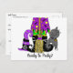 Witch, Cat and Spiderweb Cute Halloween Invitation Postcard