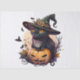 A sleek and watchful sentinel of the night while a handful of bats dart through the air, flitting past the moon like tiny, dancing shadows