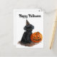 Awesome, vintage picture of a cat wearing a witch's hat standing next to a smiling pumpkin, is featured on this postcard for Halloween. With message, "Happy Halloween", this makes a great postcard to send family and friends. Back of postcard is blank so you can write your own message or use it for a Halloween party invitation!