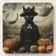This whimsical Halloween artwork features a stylish black cat dressed as a Victorian witch, surrounded by a quirky array of jack-o'-lanterns under a surreal autumn sky. A perfect blend of spooky and charming, this fantasy print is ideal for Halloween lovers, gothic decor fans, and anyone who enjoys magical realism with a feline twist.