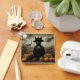 This whimsical Halloween artwork features a stylish black cat dressed as a Victorian witch, surrounded by a quirky array of jack-o'-lanterns under a surreal autumn sky. A perfect blend of spooky and charming, this fantasy print is ideal for Halloween lovers, gothic decor fans, and anyone who enjoys magical realism with a feline twist.