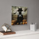 This whimsical Halloween artwork features a stylish black cat dressed as a Victorian witch, surrounded by a quirky array of jack-o'-lanterns under a surreal autumn sky. A perfect blend of spooky and charming, this fantasy print is ideal for Halloween lovers, gothic decor fans, and anyone who enjoys magical realism with a feline twist.