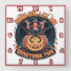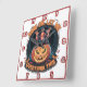 Witch conjuring thoughts by a glowing pumpkin square wall clock