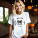 Women's Girly T-Shirt with Halloween vibes in feminine coquette look featured a cute black lace bow, a witch silhouette and fancy plant frame in black and white. Easily personalise the text. - Kate Eden Art.