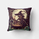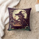 A mysterious witch stirs a bubbling cauldron, casting spells under the pale light of the full moon, accompanied by a playful cat dancing in the night.