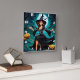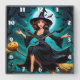Witch flying over a moonlit graveyard with bats square wall clock
