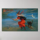 Witch Flying with Black Cat on Halloween Night Poster