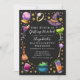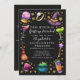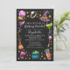 This witch is getting hitched! Celebrate our magical bride-to-be with a bachelorette invite featuring a watercolor border of cocktails, a witch's hat, a crystal ball, and a broom against a bewitching black background. Perfect for a spellbinding night out!