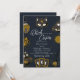 Witchy items surround this baby shower invitation with a deep blue stary background. A mystical baby shower is about to happen! Your guests will love this baby shower invitation perfect for goth, Halloween or witchy showers. See coordinating items in our shop.