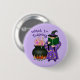 Cute Halloween fantasy design of novice witch studying her spell book. She has a witch's hat and robe with symbols. Beside her is the magic cauldron. Text says ... Witch In Training.