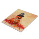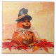 Square ceramic tile with an image of a double Halloween jack-o-lantern topped with a witch hat on a bed of red and gold autumn leaves. Orange and yellow grunge background. See matching candy jar, mug, Melamine plate, paper plate and coasters. See the entire Halloween Tile collection under the HOME category in the HOLIDAYS section.