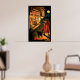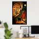 Decorate your wall with a fantastic vintage Halloween poster featuring a witch looking through a window where children are bobbing for apples at Halloween night.