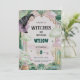Magical witch musical birthday invitation with pink and green fantasy vibes. Editable Canva template, digital and personalized for a themed party.