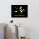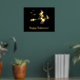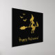 Witch On A Broom With Cat And Bats Happy Halloween Foil Prints
