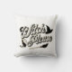 Halloween themed pillow with a vintage graphics of a witch, cat, broom and moon.