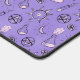Witchy desk mat with a pattern in purple with potions, chemistry flasks, suns, moons and weird eyes. This fun esoteric design is great for a pagan girl.