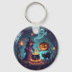 A spooky and enchanting Halloween scene featuring a mischievous witch brewing a glowing potion in her cauldron, surrounded by a black cat, a smiling jack-o’-lantern, and a friendly ghost. The mystical forest background, warm candlelight, and eerie glow create the perfect atmosphere for a magical Halloween night.
