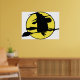 Witch Silhouette Flying on Broom Against Full Moon Poster
