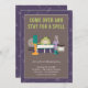 This Halloween party invitation features witch accessories such as a toad, spell books and spell supplies.