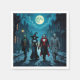 Halloween party paper napkins with ai art depicting a witch, vampire, mummy and zombie walking through Halloween night with a full moon in a cool comic book style.