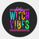 Witch Vibes Halloween Neon Chequered Bow Classic Round Sticker