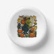 Make your Halloween party extra festive with these Halloween paper bowls featuring a cute young witch flying on her broomstick across a glowing full moon. Surrounded by smiling pumpkins, playful ghosts, bats, and a cheerful skeleton, the retro vintage artwork pops with bold colours in a family-friendly design.