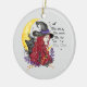 Witch with Black Cat and Crescent Moon Ceramic Ornament