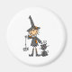 Halloween stick figure witch with black cat design cards, stickers, T-shirts, tote bags, and other items that you can customise with a name or other text.