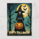 Witch With Creepy Pumpkin Lantern Halloween Postcard