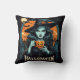Witch with pumpkin mug on Halloween Cushion