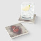 The coasters are gorgeous, a quality feel and heavy weight. They look like a precious archeological find. A rustic stone juxtaposed with a modern floral black and white print. I like the way the print goes slightly imperfect on the cut stone edges giving them a kind-of natural beauty.
